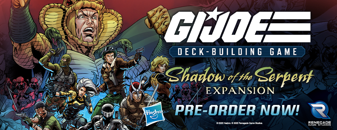 Shadow of the Serpent is expected to release in June, so pre-order today from Renegade and get the G.I. JOE Deck-Building Game Bonus Box #2 free!