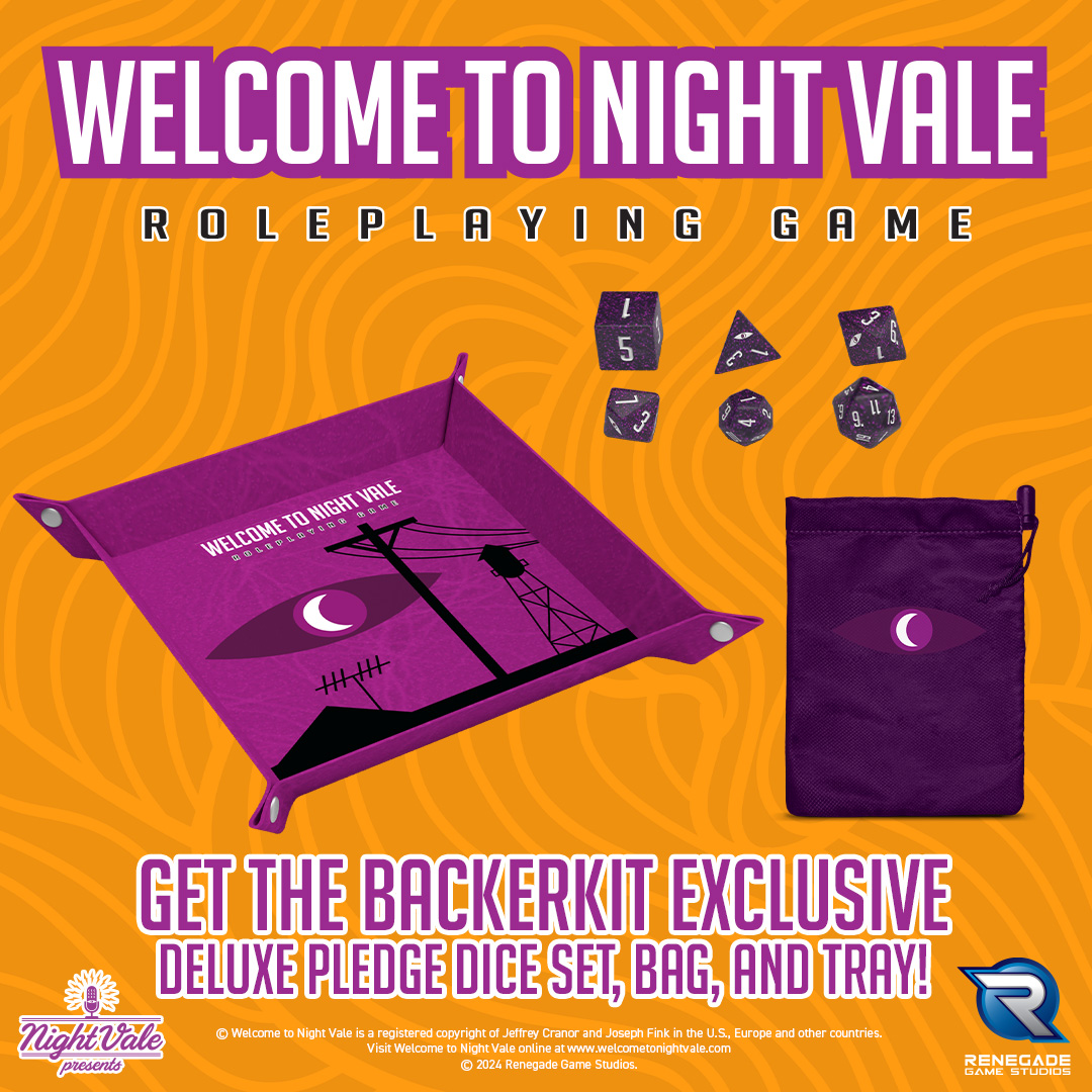 San Diego, CA – October 1, 2024 - Renegade Game Studios is excited to announce the launch of the crowdfunding campaign for the Welcome to Night Vale Roleplaying Game, which can be found now on BackerKit! The Welcome to Night Vale Roleplaying Game is a complete roleplaying game powered by the Essence20 Roleplaying System. With the Welcome to Night Vale Roleplaying Game, players will find everything they need to embark on exciting adventures in Night Vale. Players can portray a pre-generated character or create their very own citizen. The game will include all the rules and guidelines you need to fully immerse yourself in the world of Night Vale.