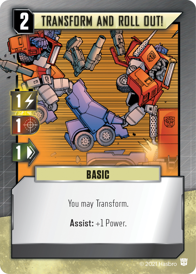 Finally, in addition to paying 1 Energon to change forms, it is also possible to changeat no cost via card effects. Most commonly this can be done with the Basic card “Transform And Roll Out!”, 16 of which form a pool that can be purchased from at any point, regardless of your location in the Matrix. This versatile card provides 1 Power with 1 Range for purchasing and combat (plus an additional power when used to Assist another player!), as well as 1 Move and card ability allowing a no-cost conversion when played. A player would be well served to pick up a copy or two in early rounds if nothing particularly attractive is found in the early scouting of the Matrix!