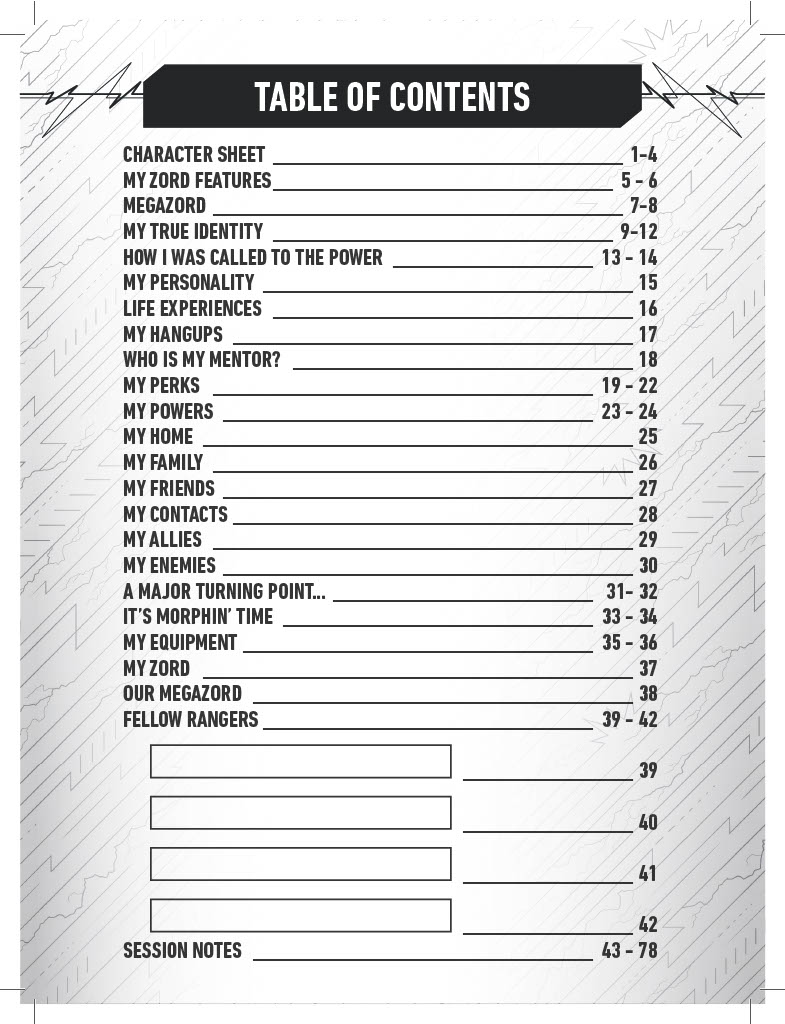 This particular journal has been tailored to the Power Rangers RPG; we will be