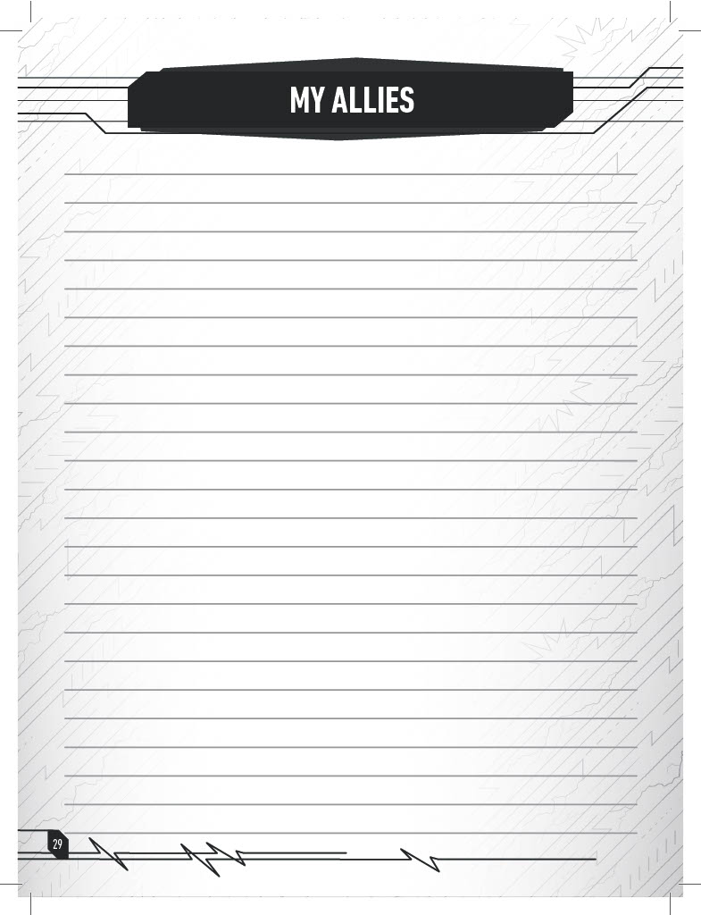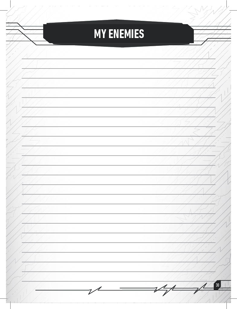 Lastly, the journal provides four pages to record specific information on how your character perceives each of your fellow team members! This is a great way to really get inside the head of your character and improve your immersion!