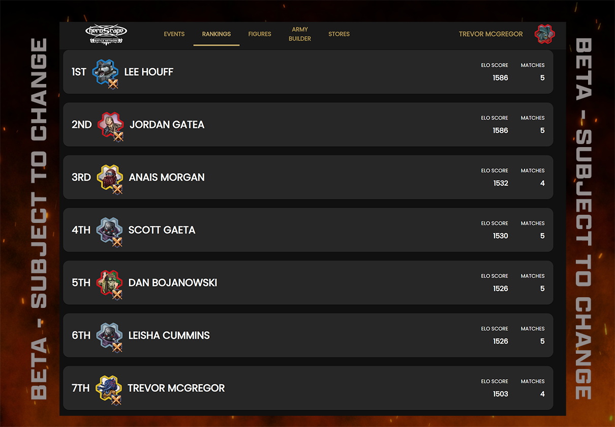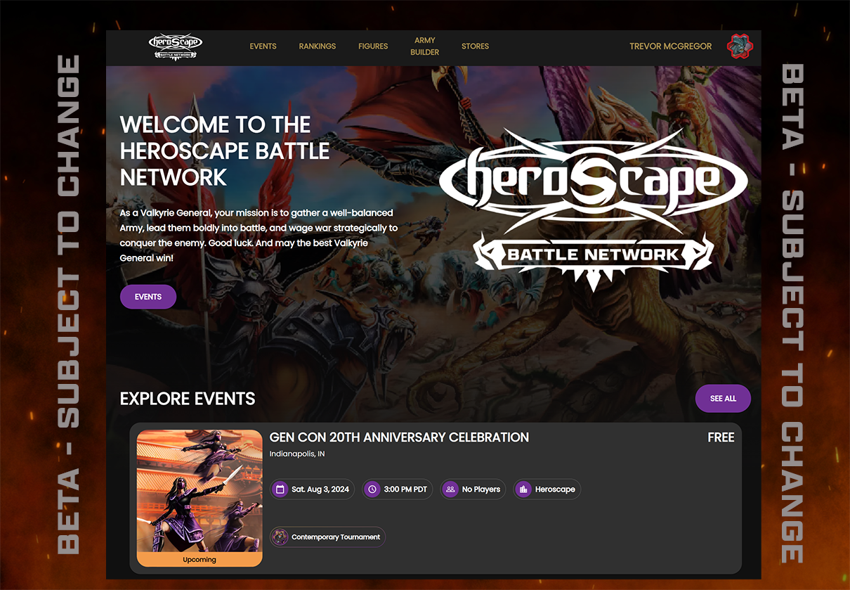 The Battle Network will also feature Player Rankings! The Battle Network will track your performance in events, so you’ll be able to earn placements and show off your battle prowess to the entire Heroscape community! You can even click into different players and deep dive into their performance record, giving you an idea of who you’re up against at your next tournament.