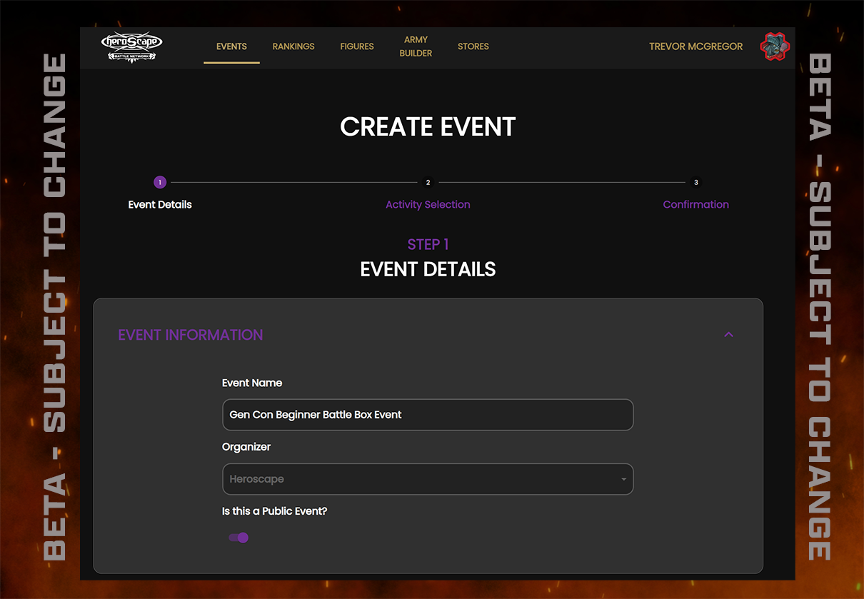One of the best parts of the Battle Network is the event hosting. This makes it so players can see any and all Heroscape events running around the world, and find the ones closest to them. This will make finding and jumping into events easier than ever! Plus, this takes a lot of the strain off of the event organizers and stores. It’s super easy to register your event. Our Battle Network minions behind the scenes will take a couple days to review an event organizer and make sure they’re legitimate, and then you’ll be set!