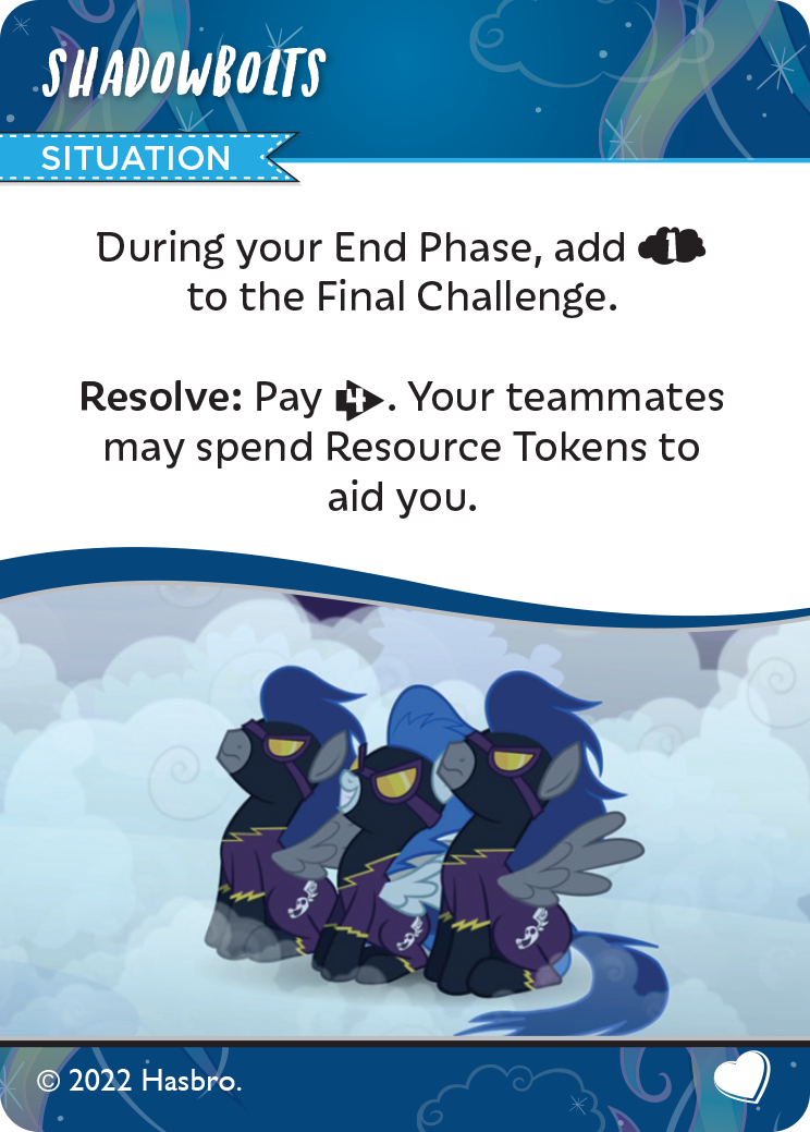 There’s an interesting strategy to be had with Situations, so take note: Situations act just like any other card in the Adventure Row. If you acquire any cards to its right, at the start of the next turn, shift all cards over to fill in any gaps. You’ll also discard the right-most card in the Adventure Row for turns that you haven’t taken any card from the Adventure Row. That means that you could hypothetically play around Situations rather than having to pay for them, if your Resources are more valuable in other instances. Is it worth taking on a few Clouds if it means moving to a new location and gaining 3 Sugar Cubes? Most likely, it probably is, but this is all hypothetical, situational conjecture! Do play to the best efforts of your team!