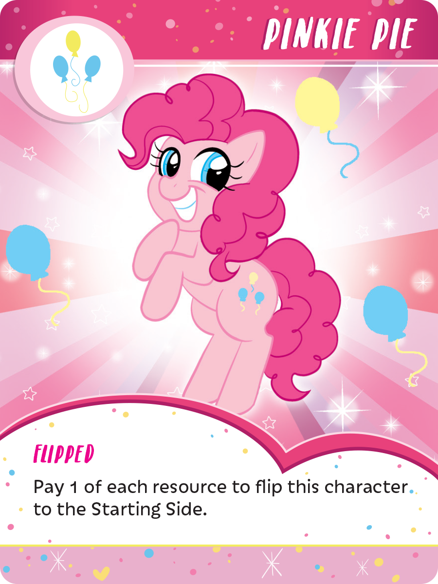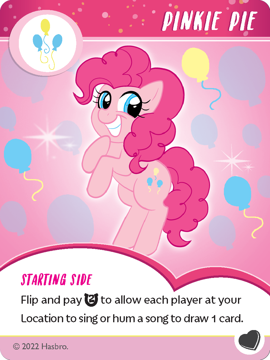 Pinkie Pie’s Ability: Flip and pay 2 HELP to allow each player at your Location to sing or hum a song to draw 1 card.