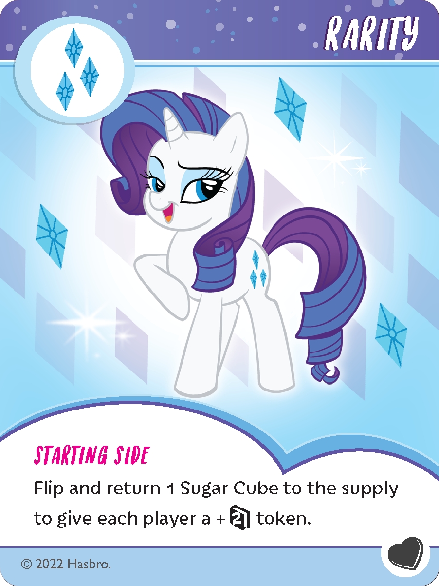 Rarity’s Ability: Flip and return 1 Sugar Cube to the supply to give each player a +2 INFO token.