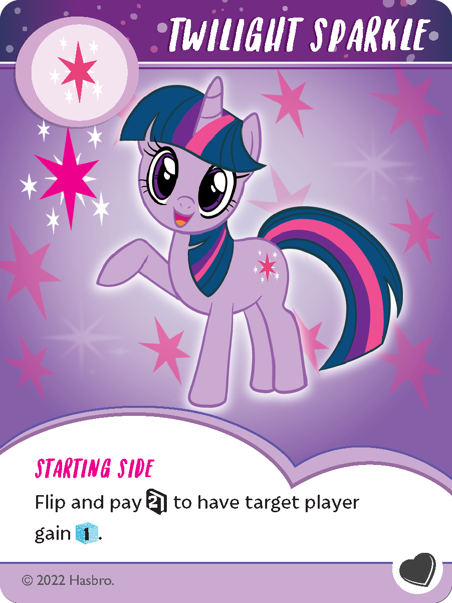 Twilight Sparkle’s Ability: Flip and pay 2 INFO to have target player gain 1 BLUE CUBE.