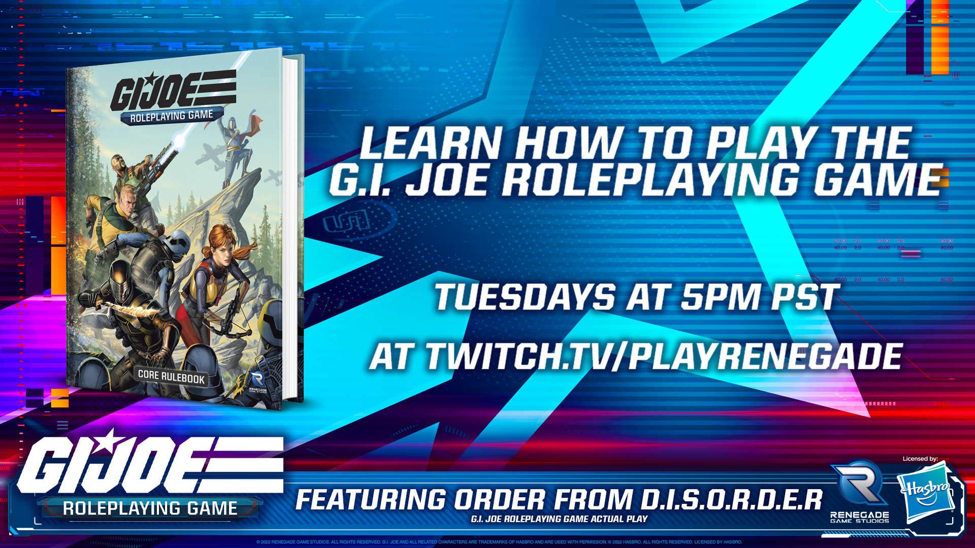 Order from D.I.S.O.R.D.E.R Learn How to Play Series: Session Two – Many will rejoice to hear that the fan favorite of last week’s content will continue on this week! Session two of the G.I. Joe Roleplaying Game Actual Play drops today at 5:00 PST on our Twitch channel! Come check it out to learn how to play the G.I. JOE Roleplaying Game! If you missed session one, it is available for viewing on our YouTube channel! Be sure to get caught up now, as we'll stream a new session every Tuesday evening for the next 10 weeks!