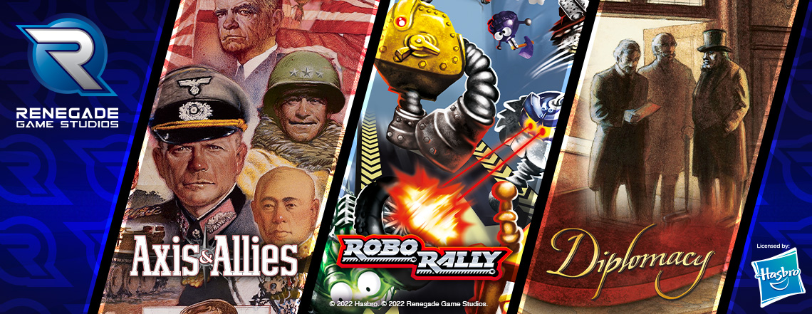 San Diego, CA – October 6, 2022- Renegade Game Studios is excited to announce that they are in negotiations to expand their licensing relationship with Hasbro, a global branded entertainment company, to include best-selling games Axis & Allies, Diplomacy, Squad Leader, and Robo Rally.
