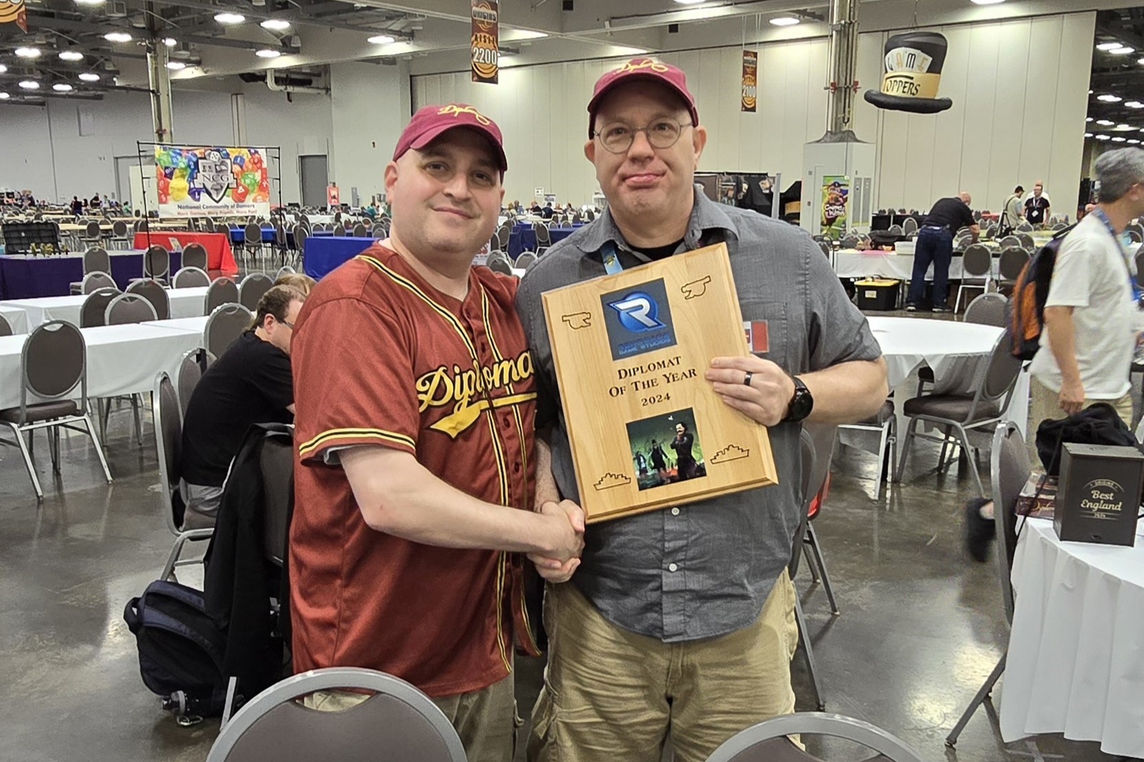 Congratulations to Robert Lacy on being named the 2024 “Diplomat of the Year”! This past year, Renegade Game Studios established a “Hall of Fame” for community members who have gone above and beyond to create a positive and inclusive environment and grow the Renegade community by upholding our number one value: gaming is for everyone. In the same tradition, we have selected a “Diplomat of the Year” to honor an individual who has gone to extraordinary lengths to grow the game of Diplomacy.