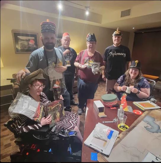 Robert runs three Diplomacy convention events by himself. He travels between Dallas and Houston, teaching the game multiple times over the course of the convention and always with special setups. He provides the players with WW1-era officer hats, country flags, color-coded gear, and has special maps setup. All these elements combine for a unique experience to ensure a player’s first game is fun and memorable. Additionally, Robert teaches Diplomacy at local game stores around his hometown in Dallas and started up a local league for play.