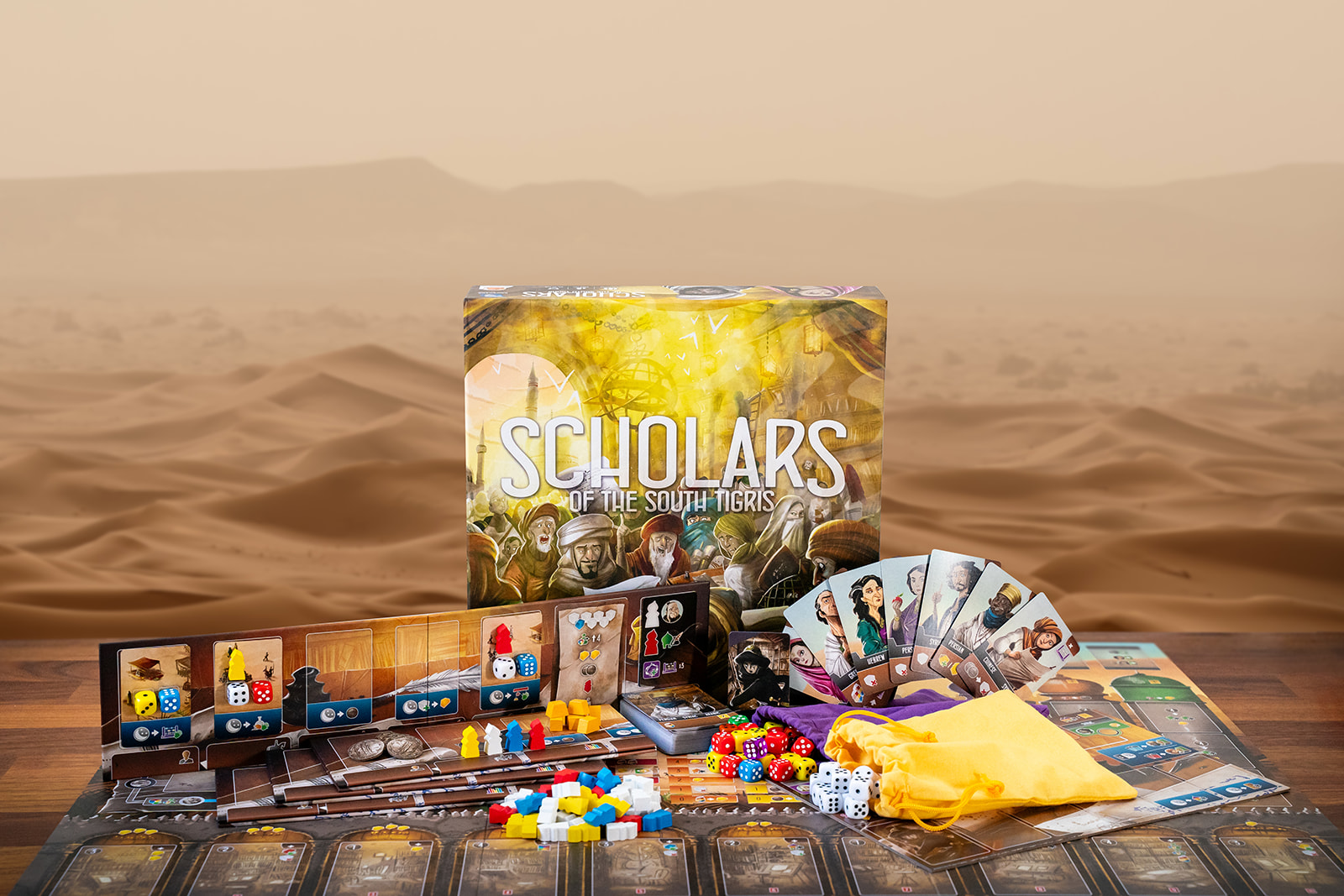 Scholars of the South Tigris is a new stand-alone game in the South Tigris trilogy set during the height of the Abbasid Caliphate, circa 830 AD. The Caliph has called upon the keenest minds to acquire scientific manuscripts from all over the known world. Players will need to increase their influence in the House of Wisdom, and hire skilled linguists to translate the foreign scrolls into Arabic. In this Golden Age of wisdom and knowledge, be mindful not to neglect one in pursuit of the other.